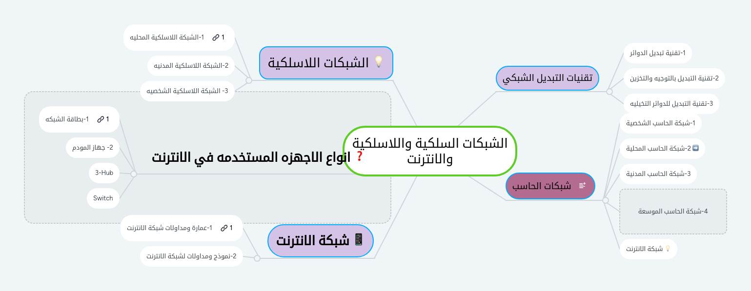 الشبكات السلكية و اللاسلكية Mindmeister Mind Map